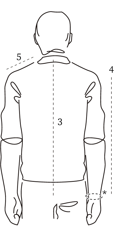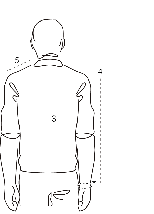 Back3. Jacket Length: Measure the straight distance from the bone at the back of your neck to the midpoint of your buttocks.
